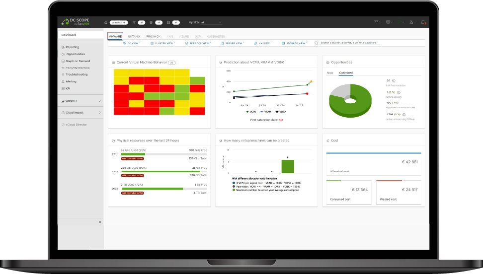 Add precise forecasting, waste reduction, and proactive network monitoring to your virtual datacenter— improving service continuity, accelerating decisions, and supporting Green IT goals.